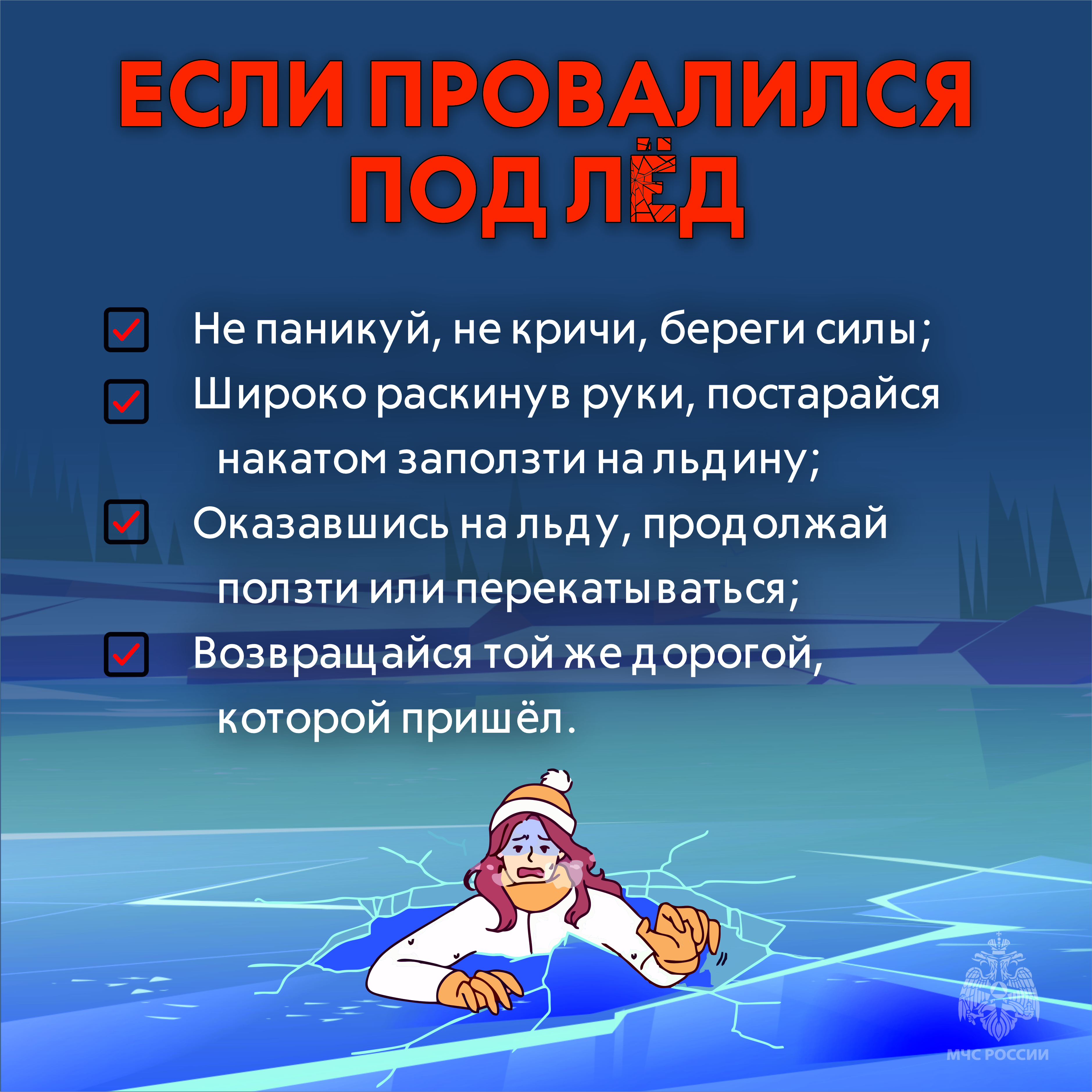 В зимний период одним из посещаемых мест становятся замерзшие водоемы: люди приезжают на озера и реки, чтобы погулять, покататься на коньках и лыжах или порыбачить. На водоемах особую угрозу представляют места, где есть растительность, быстрое течение воды, где бьют ключи или стекают сточные воды: на таких участках лед менее прочный, как и у берегов, в нем могут быть трещины. Если несколько дней температура воздуха держится на плюсовой отметке, на лед лучше не выходить.